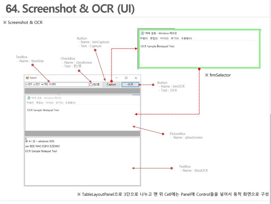 간단하게 스크린샷 찍는 부분과 찍은 스크린 샷에서 문자를 인식 하는 부분으로 구성 하였습니다.
