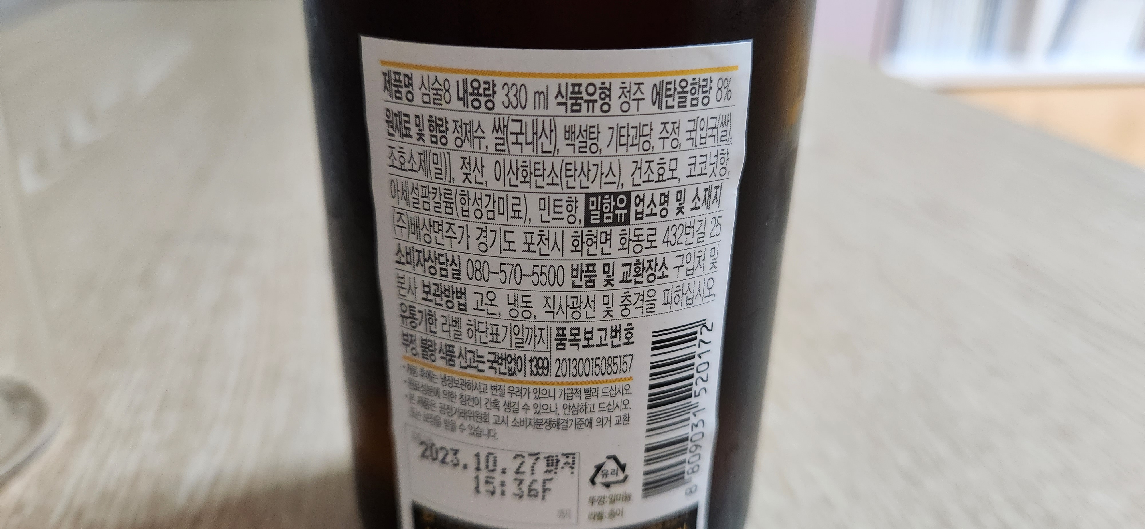 도수는 8도이기 때문에 마시기 어렵진 않습니다.