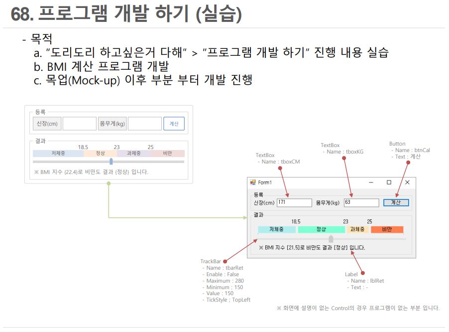 // 2. BMI 수치를 가지고 Trackbar를 이동