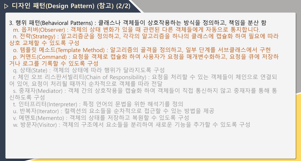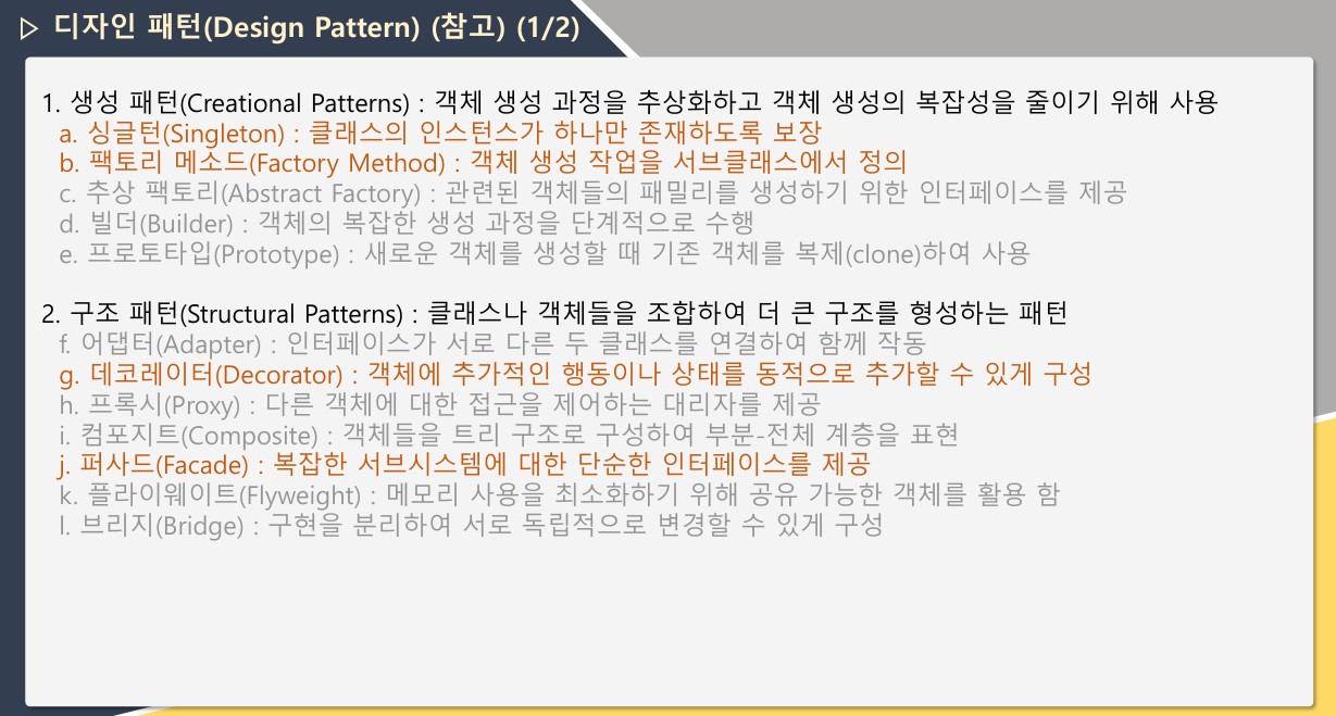 디자인 패턴 역시 진행 할 내용으로 정했는데 생각보다 비슷비슷한 내용들 밖에 나오지 않고 개론적인 부분들도 두루뭉수리 한 부분들이 많아서 이번 내용은 정리 했던 부분들만 짧게 올리고 저 답게 예제로 풀어 가려고 합니다.