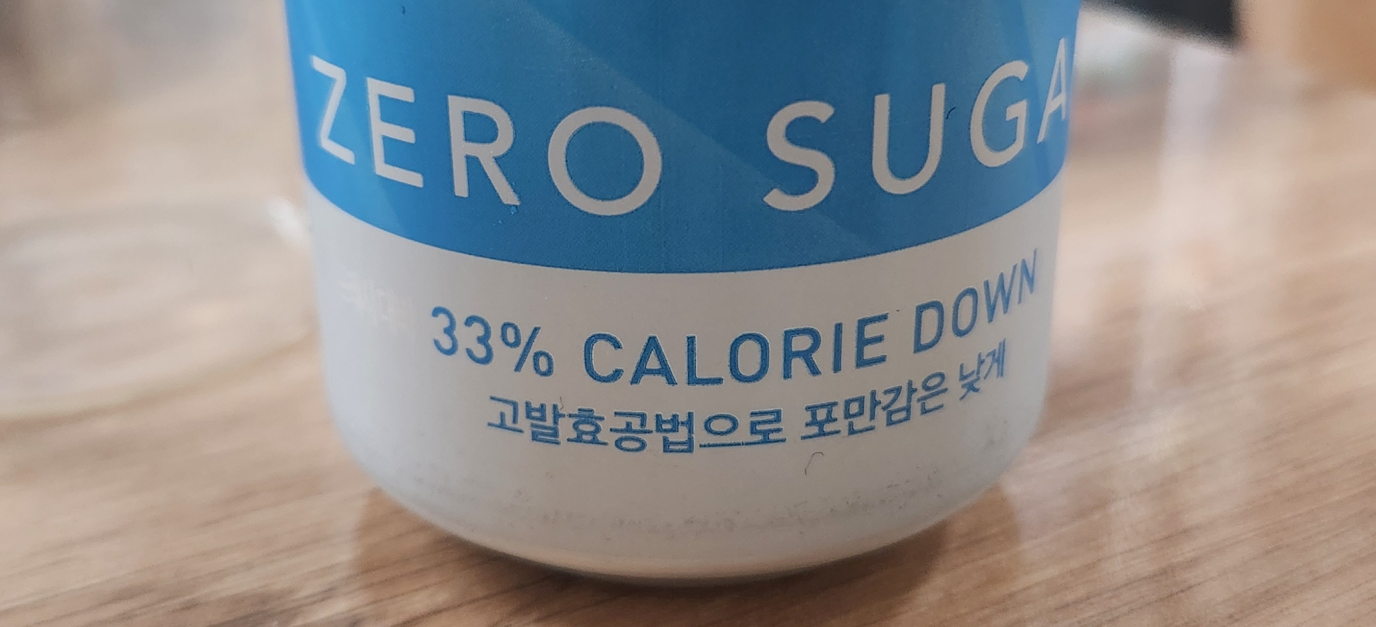 제로 슈거를 강조하고 있고 웃긴게 33% 칼로리를 줄였다고 하는데 법에 안걸리려면 기준이 필요해서 그런지 앞에 보일랑 말랑 할 정도로 "카스 프레시 대비" 라고 적혀 있습니다.