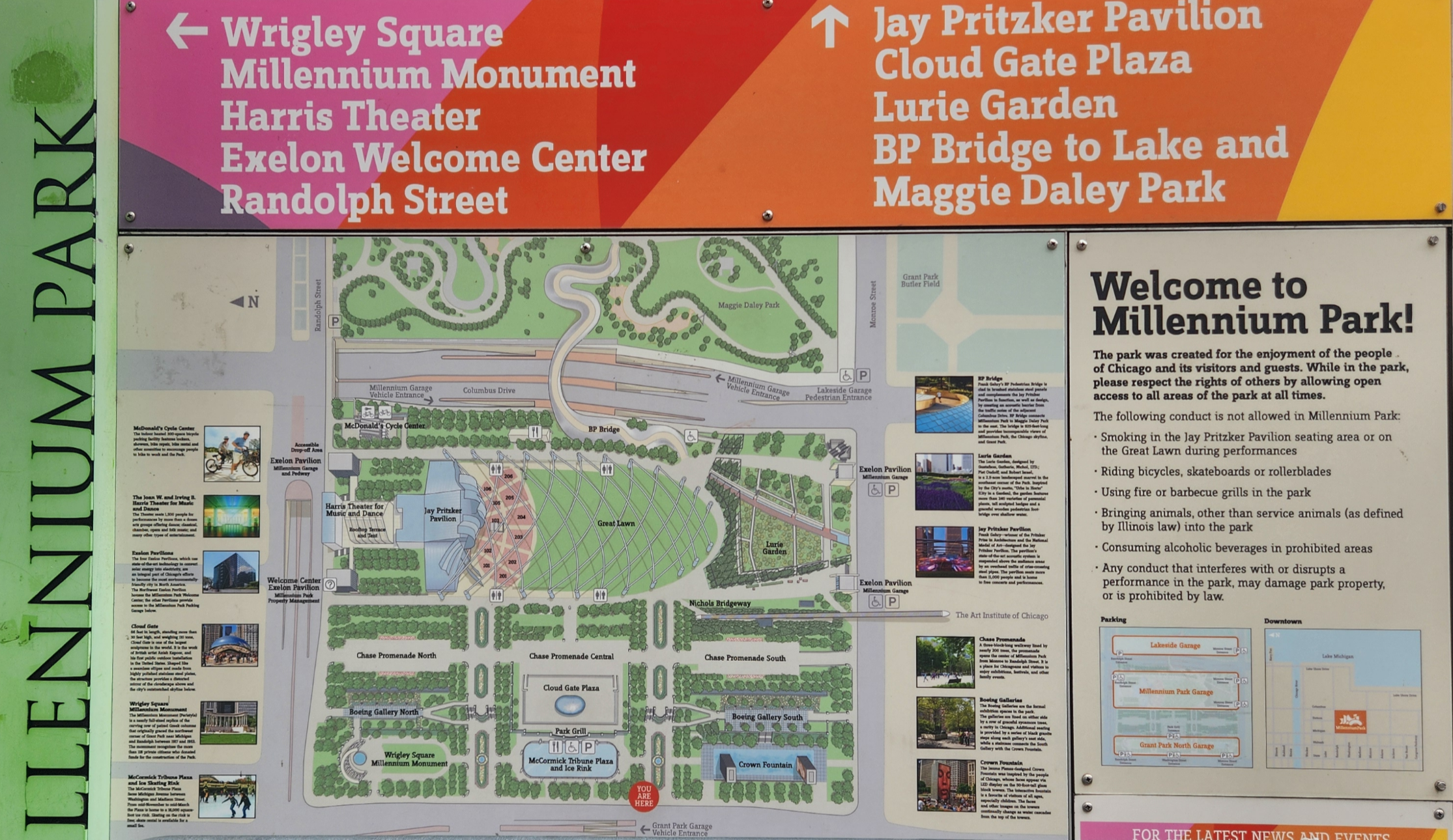 차량을 가지고 이동 했는데 밀레니엄파크 바로 앞 도로에 있는 주차장이 넓고 찾기가 편해 그 쪽에 주차를 하고 이동 하였습니다.