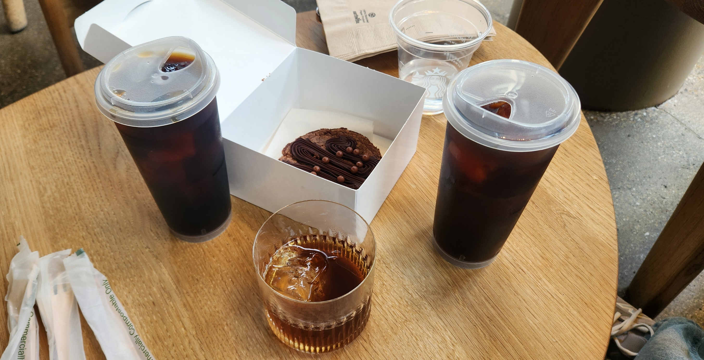 2층: 스타벅스 리저브 카페 (Starbucks Reserve Café) - 샌드위치, 아티장 빵, 디저트, 커피 음료 등