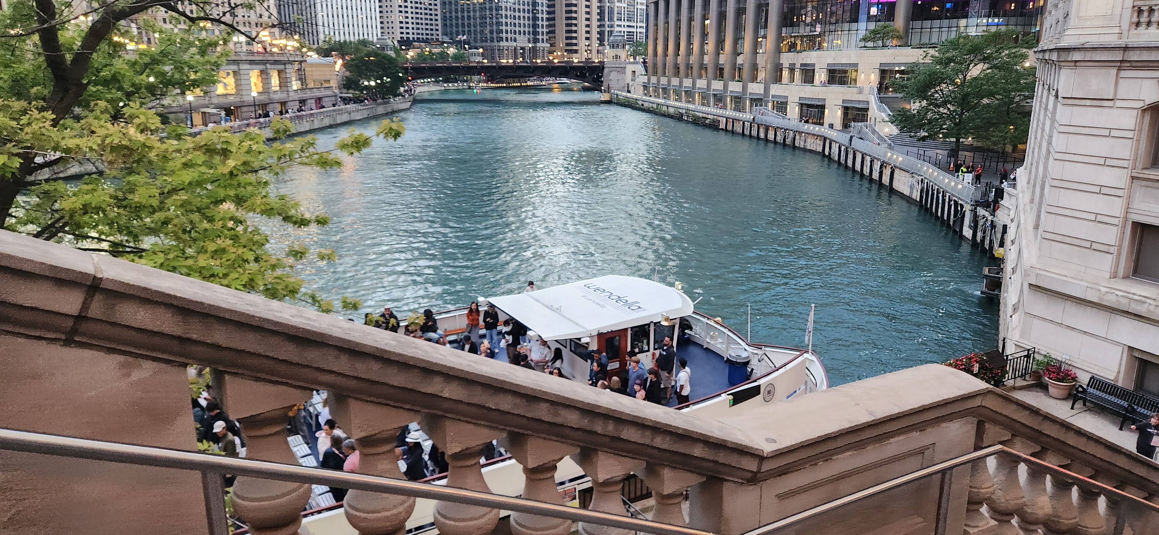 강을 따라 설명을 들으면서 시내로 들어 갔다가 다시 돌아왔다가 호수로 나가서 시카고 도시를 한번 바라보고 들어오는 코스로 되어 있었습니다.