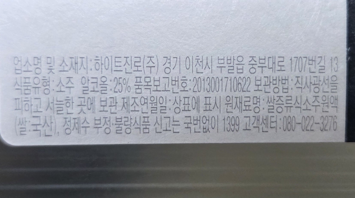 도수가 25도라 꽤 높은 편인데, 마셔보면 목 넘김이 생각보다 부드럽습니다. 확실히 뒷맛이 깔끔해서 '아, 이래서 돈 더 주고 증류주 마시는구나' 싶은 생각이 듭니다.