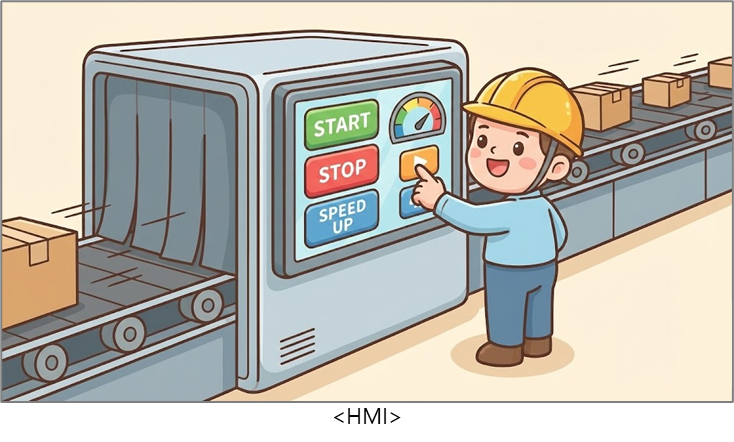 c. 정의: 사람이 기계 장비의 상태를 모니터링하고, 직접 조작(Start/Stop, 파라미터 설정) 할 수 있도록 해주는 인터페이스