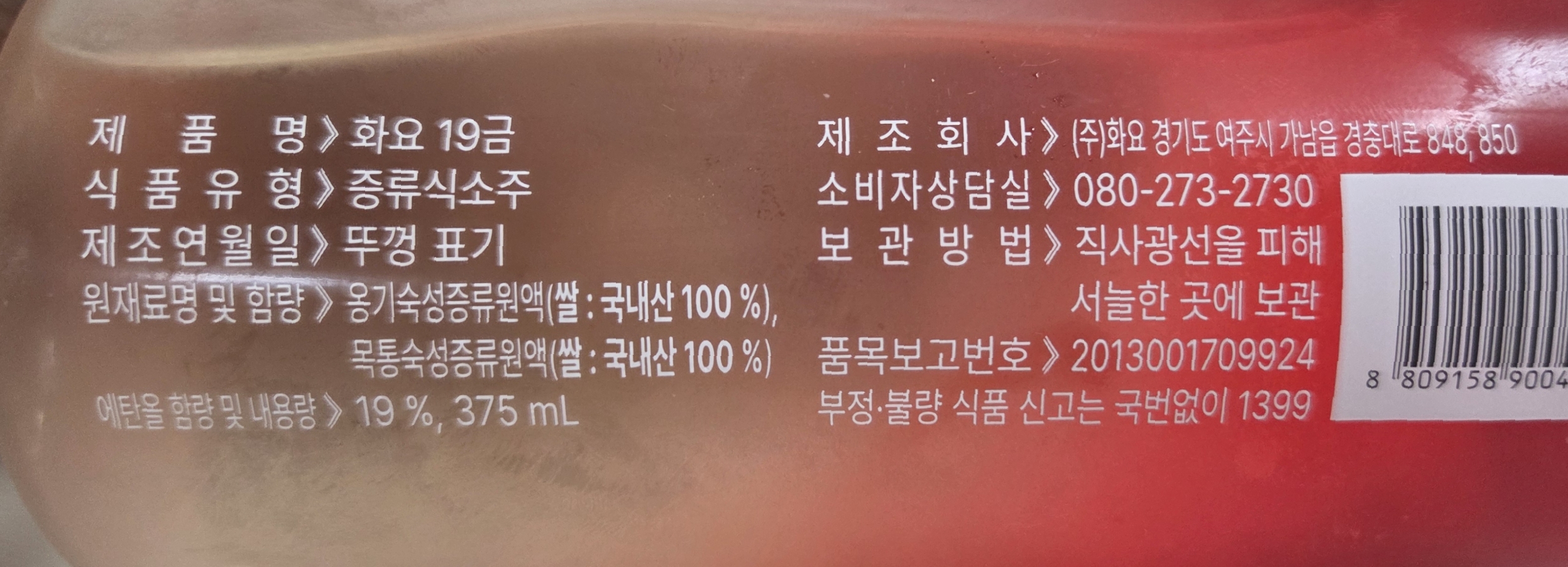 순도가 높아서 그런지 16도로 통하는 희석주들보다 19도인 술이 훨씬 목넘김이 좋습니다.