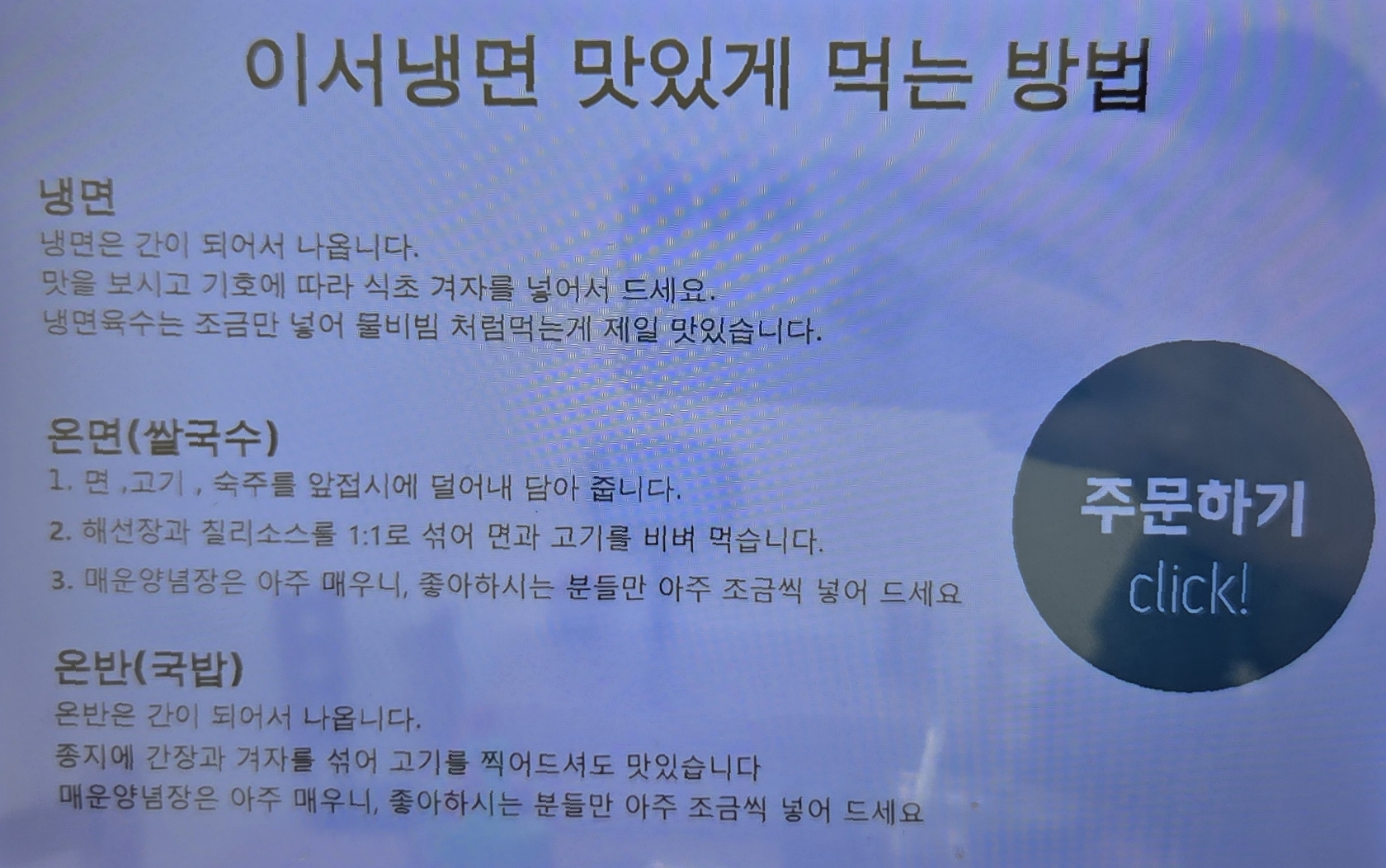 이름이 냉면집이긴 하지만 베트남 쌀국수를 한국식으로 해석 한 온면으로 유명한 곳이라고 합니다.